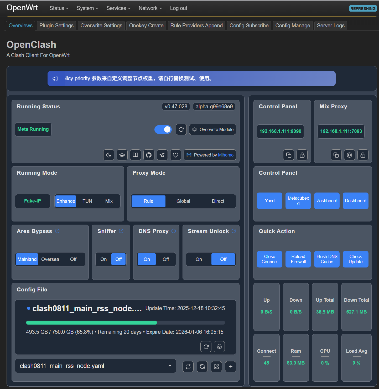 坑:openclash 刚进入时会提示缺少 core 文件,询问是否下载,点击确定后,下载不会成功;提示超时。
